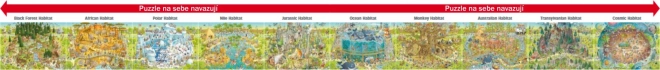 - Tudi več puzzlov iz serije se popolno nadaljuje med seboj.