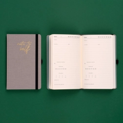 Upočasnite, pridobite pregled in organizirajte svoje aktivnosti učinkoviteje. Nedatirani planer Note to Self vas vodi skozi kratek dnevni ritual, ki podpira boljšo osredotočenost in dolgoročni osebni razvoj. Z jasnim tedenskim pregledom, prostorom za navade, samorefleksijo in cilje boste imeli vse pomembno na enem mestu.
