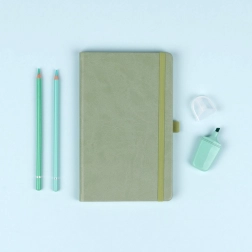 Sodoben zeleni videz z nežno teksturo in trda knjižna vezava z zaobljenimi vogali zagotavljata dolgo življenjsko dobo in udobno vsakodnevno uporabo.
