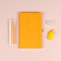 Zvezek NOTIQUE v intenzivni rumeni barvi združuje eleganten dizajn in funkcionalnost. Zahvaljujoč trdim platnicam in zaobljenim robovom zlahka prenese vsakodnevno uporabo v pisarni, šoli in na poti. Praktični elastični trak drži liste skupaj, stranska zanka pa poskrbi, da imate svinčnik vedno pri roki.