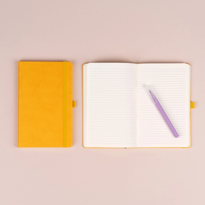 Stajliš in praktičen črtasti zvezek v trendovski rumeni barvi z merami 13 × 21 cm je idealen za vsakodnevne zapiske, načrtovanje in journaling. Ima trdo knjižno vezavo, elastični trak za varno zapiranje, zanko za svinčnik in tekstilen zaznamek. Črte 6 mm na kakovostnem papirju zagotavljajo udobno pisanje in preglednost.