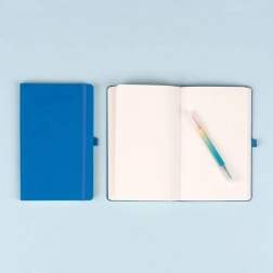 Slogovna beležka NOTIQUE v modri izvedbi združuje reprezentativen videz in funkcionalne podrobnosti. Površina z rahlo grobo teksturo deluje profesionalno in je primerna tudi za tisk z vročo folijo (razboso), zato je odlična kot poslovno darilo ali osebno delovno orodje.