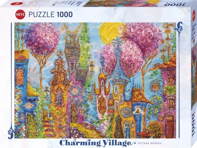 HEYE puzzle Rožnati drevesi vas popelje na mirno potovanje v očarljivo vas, polno čudovitih rožnatih dreves. Uživajte v sproščujoči izkušnji ob sestavljanju te osupljive slike.