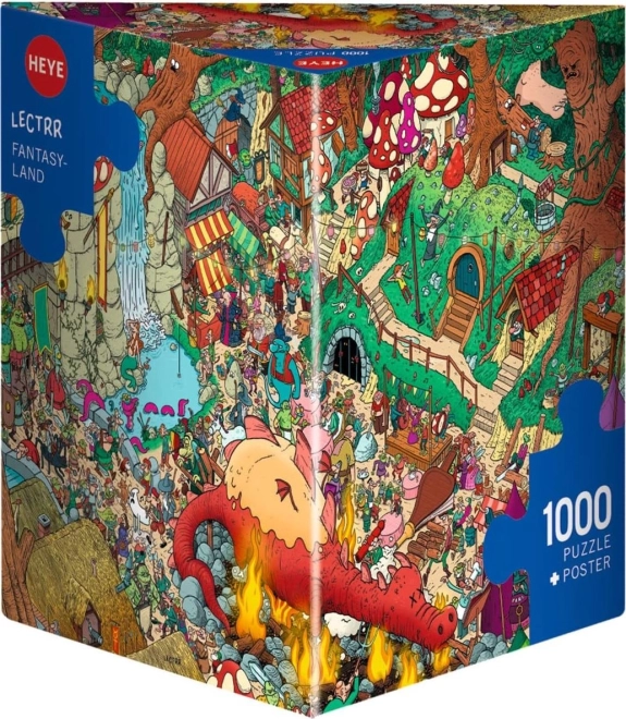 Odkrijte svet, poln domišljije, s Heye Puzzle Dežela fantazije, ki vsebuje 1000 koščkov in je pakiran v edinstveni trikotni škatli.