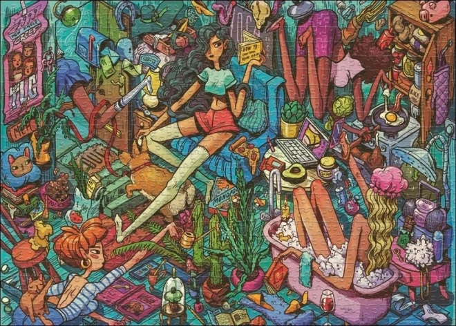 Potopite se v svet domišljije s to izjemno sestavljanko priznane karikaturistke Marije Tiurine. Trikotna škatla je ne le estetsko privlačna, temveč tudi praktična za shranjevanje. Dimenzije sestavljene sestavljanke so približno 70 x 50 cm, kar omogoča čudovit pogled na podrobno ilustracijo.