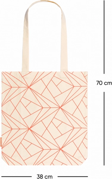 Velikost je primerna za nakupe, malico in osebne stvari. Dolgi ročaji omogočajo udobno nošenje čez ramo.