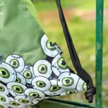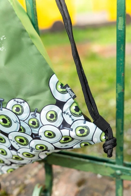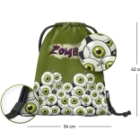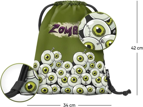 Nahrbtnik prekriva grafika zelenih risanih oči in napis »Zombie«, kar pritegne pozornost in doda osebnost.