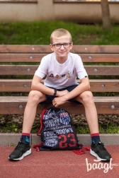 Vrečka je izdelana iz čvrste tekstilije, ki se zlahka čisti in prenese vsakodnevno uporabo v šoli in na treningih.