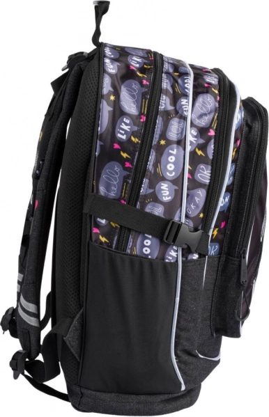 Oblikovan hrbtni del ter popolnoma nastavljivi ramenski, prsni in stranski kompresijski trakovi zagotavljajo stabilnost in udobje, tudi ko je nahrbtnik poln učbenikov.