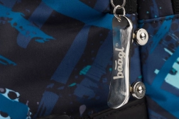 Izdelan je iz trpežnega, vodoodpornega materiala, ta nahrbtnik zagotavlja varnost z odsevnimi elementi in vključuje tudi kovinski obesek v obliki rolke za dodaten slog.