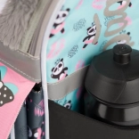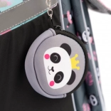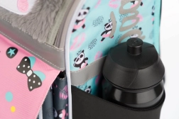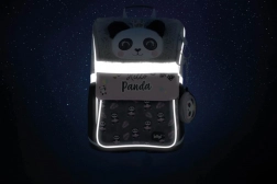Del seta je tudi klasična enonadstropna peresnica z dvema preklopoma in kakovostno zadrgo ter praktična vrečka iz trpežnega, pralnega materiala s sprednjim žepom na zadrgo. Celoten set krasi priljubljen motiv pande in je dopolnjen z varnostnimi odsevnimi elementi za boljšo vidnost.