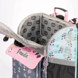 Aktovka, peresnica in vrečka so usklajene v igrivem motivu pande. Mehki detajli in kakovostne zadrge bodo razveselili otroke, vzdržljivi materiali pa starše.