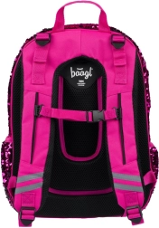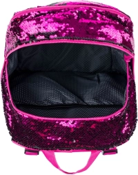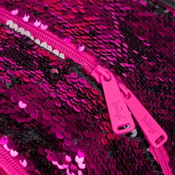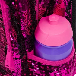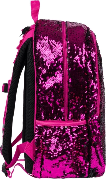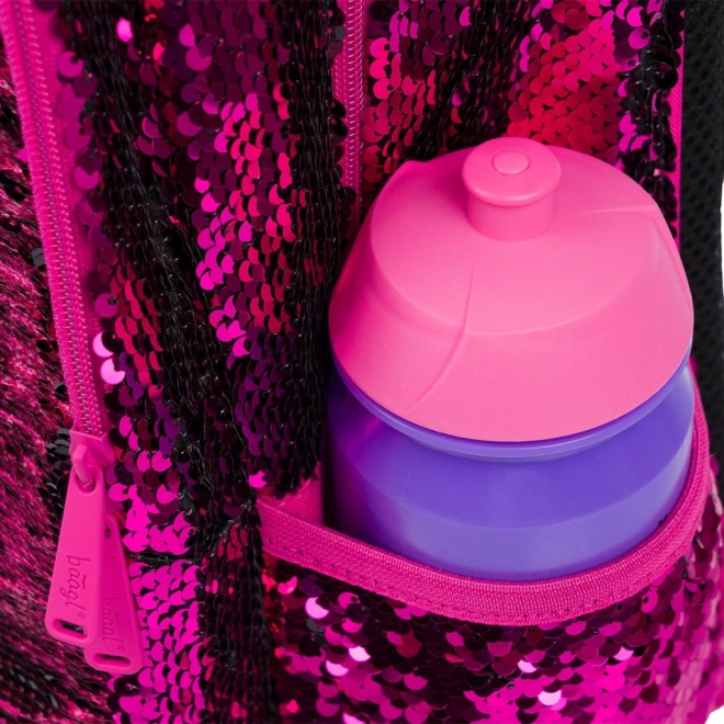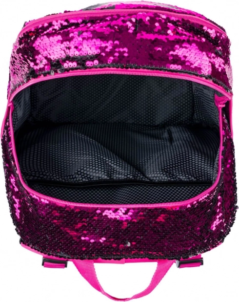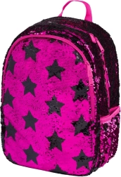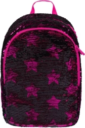 Rožnate bleščice in črni zvezdni vzorci dajejo nahrbtniku izrazit slog, popoln za otroke, ki želijo izstopati iz množice.