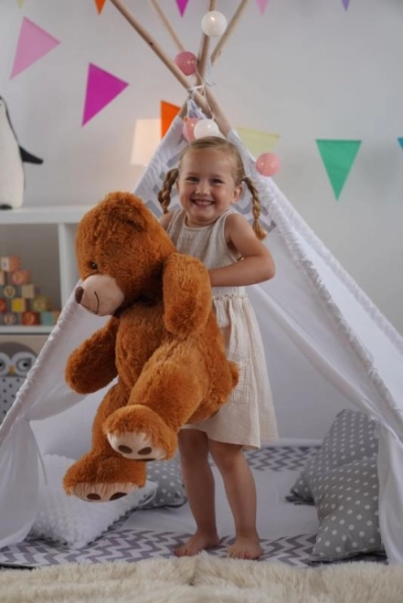 Prisrčen in mehak plišasti medvedek višine 60 cm bo razveselil otroke in odrasle. Izdelan iz kakovostnega, mehkega pliša, idealen za crkljanje, igranje in kot okras otroške sobe.
