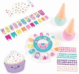 Set za nohte Candy je popolna izbira za mlade ustvarjalce, ki želijo dodelati svoj osebni slog. Vsebuje dva laka za nohte v obliki sladoleda, ki sta na vodni osnovi in ju lahko preprosto odstranite s toplo vodo in milom. Ta set je dopolnjen z mnogimi barvnimi nalepkami in dekoracijami, ki omogočajo ustvariti izviren in igriv videz nohtov.