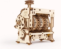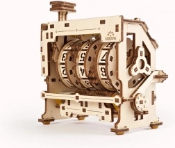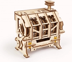Ta eleganten leseni števec iz vezane plošče vam omogoča enostavno beleženje vaj, oseb, predmetov ali pojavov v razponu 0–999. Navdušence nad mehaniko bo razveselil vlečni mehanizem, princip, znan iz tahometrov in projektorjev, katerega izvor sega do Herona Aleksandrijskega. Model je certificiran pri STEM.org kot primeren učni pripomoček, delovanje pa si lahko interaktivno razložite z aplikacijo UGEARS s podporo AR (razširjene resničnosti).