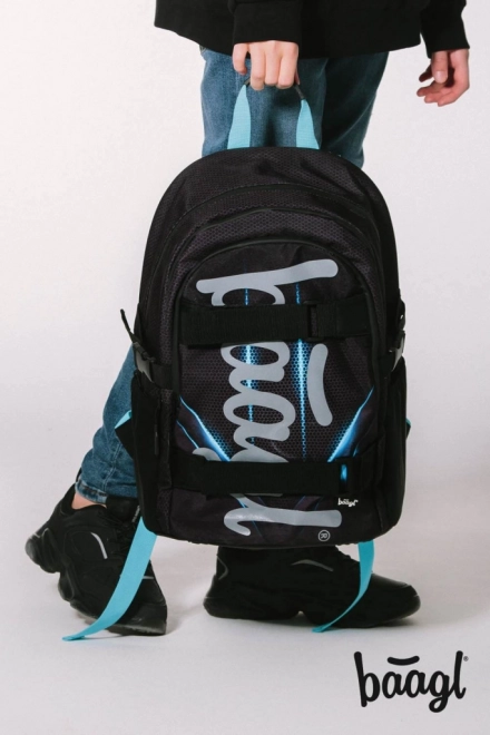 Šolski nahrbtnik Baagl Skate Bluelight je idealna izbira za vsakodnevno nošenje v šolo ali prosti čas. S tremi ločeno zapirljivimi predelki, notranjim organizatorjem in žepom za 15-palčni prenosnik ali tablico ta nahrbtnik ponuja dovolj prostora za vse šolske potrebščine.