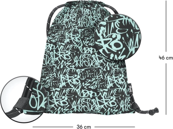 Stilska vrečka BAAGL v dizajnu Graffito je odlična izbira za copate, športno obutev in druge drobnarije. Zahvaljujoč trpežnemu in enostavno čistljivemu materialu zlahka prenese šolsko in prostočasno uporabo ter ohranja vsebino na varnem.