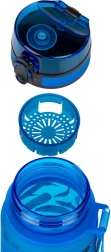 Ta tritanova steklenica s prostornino 500 ml je nepogrešljiv dodatek za šolo, izlet ali športni klub. Zaklenljiv pokrov zagotavlja, da ne uhaja niti kapljica, in integrirano cedilo vam omogoča pripravo limonade ali čaja. Udoben ročaj omogoča enostavno prenašanje.