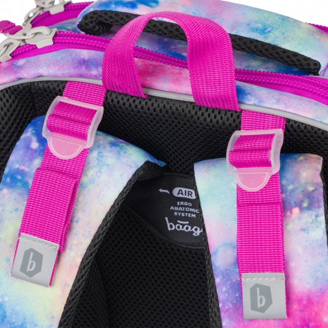 Ergonomski hrbtni sistem AIR ERGO ADJUSTABLE SYSTEM prilagodi aktovko postavi šolarja in podpira zdrav razvoj otroka z optimalnim pretokom zraka ob hrbtenici. Popolnoma nastavljive naramnice in prsni pašček zagotavljajo največje udobje.