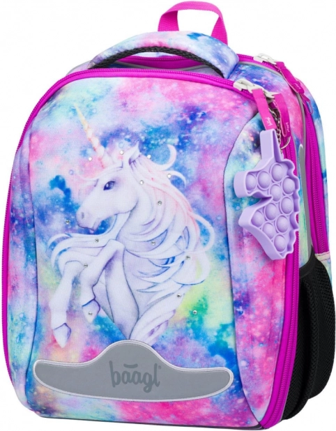 Šolska aktovka Baagl Shelly Samorog se odlikuje po ojačanem ohišju, ki ščiti vsebino aktovke kot oklep. Zahvaljujoč dvoprekatnemu sistemu se teža enakomerno porazdeli, sprednji prekat pa vsebuje praktičen organizator z žepkom za drobnarije in karabin za ključe.