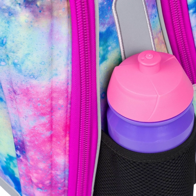 Stranska žepa iz trdne mrežice sta idealna za steklenico za pijačo. Aktovka ima trdno dno, ki ohranja stabilno obliko in omogoča samostojno stojenje. Z volumnom 23 litrov in nosilnostjo 6 kg izpolnjuje vse potrebe malega šolarja. Nizka masa 1000 g in trendovski pop it obesek naredita to aktovko še privlačnejšo.