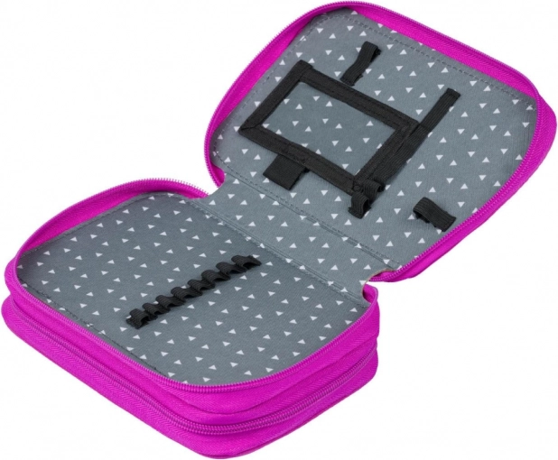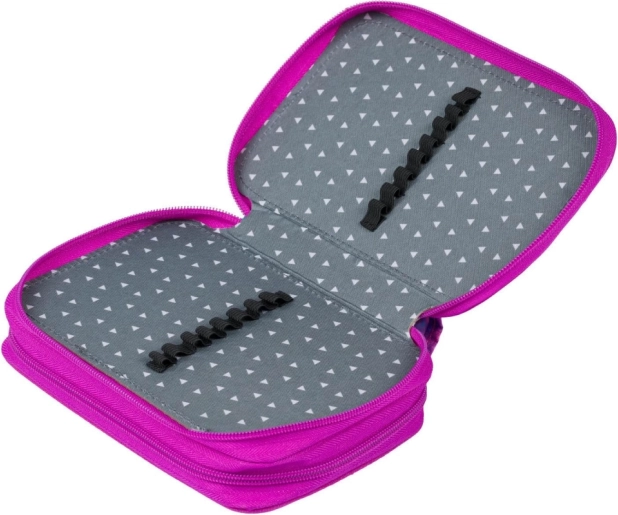 Prinesite v šolo malo čarovnije s tem dvonivojskim peresnico s čudovitim motivom enoroga. Njegov ojačan hrbet omogoča lažjo manipulacijo in kakovostne elastike omogočijo organizacijo tudi velikih trikotnih barvic.