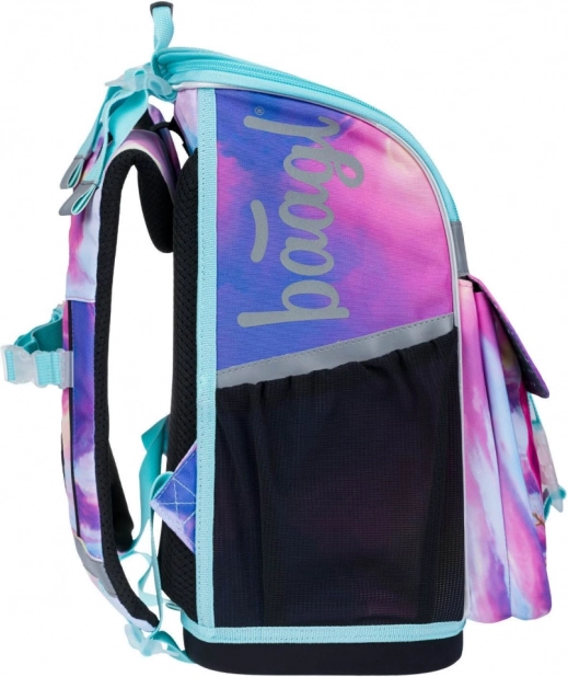 Aktovka vključuje stranska mrežasta žepa za pijačo ter odsevne elemente za večjo varnost otroka na poti v šolo.