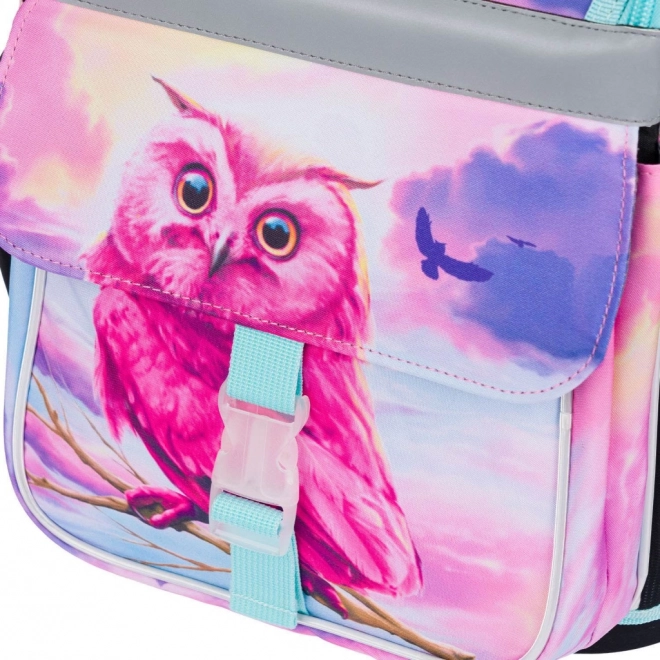 Aktovka z edinstvenim sovjim motivom pritegne pozornost in doda zabaven element šolski opremi.