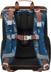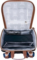 Torba ima sodoben sistem odpiranja, ki otrokom olajša dostop do šolskih pripomočkov kar iz šolske klopi. Znotraj boste našli prosojen žep s časovnico in organizator za enakomerno razporeditev teže, dopolnjen z elastiko za pritrditev.