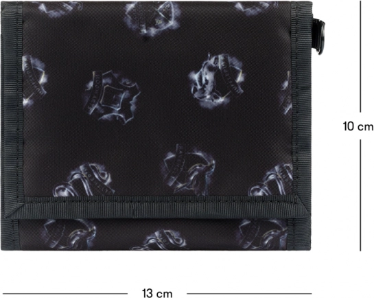Črn vzorec z motivi Bradavičarke daje denarnici edinstven videz.