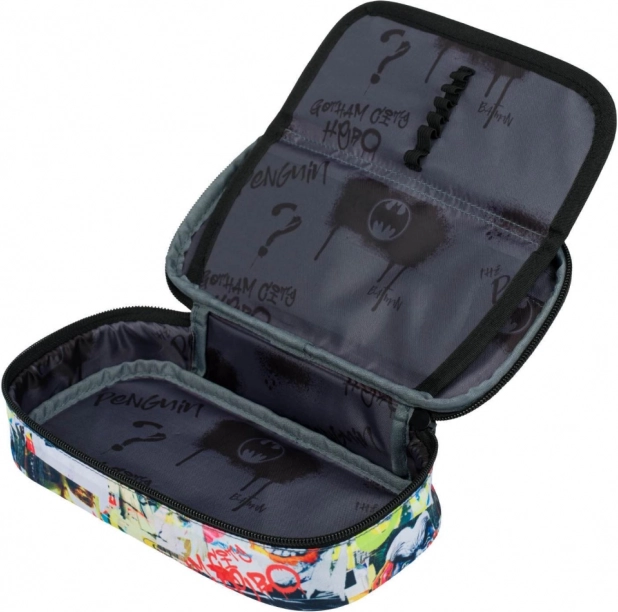 Barven komični vzorec z ikoničnim logotipom Batman pritegne pozornost in odlično dopolnjuje stil šolskih potrebščin.