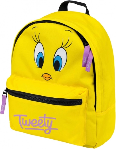 Nahrbtnik izstopa v živo rumeni barvi z motivom Tweety, kar je privlačno za majhne otroke.
