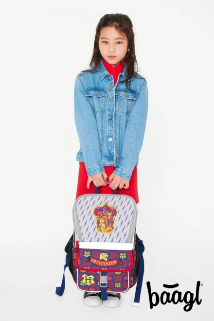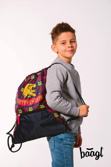 Vse usklajeno v dizajnu GRYFONDOM iz HARRY POTTER: lahka in trdna aktovka, peresnica z dvema preklopoma (brez polnila) in vzdržljiva vrečka s sprednjim žepom na zadrgo ter zavezovanjem za nošenje na hrbtu.