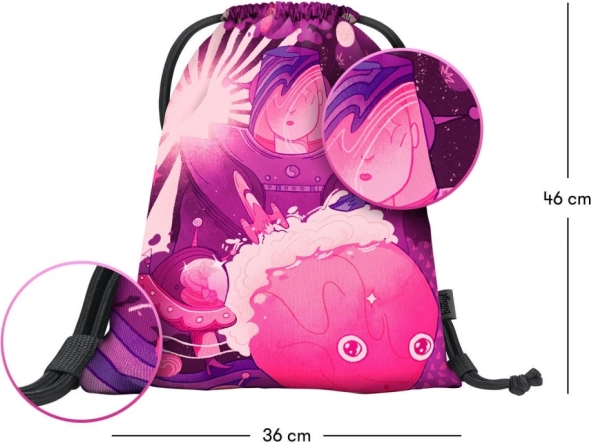 Izstopajte z izvirnim vesoljskim dizajnom in praktičnostjo v enem. Ta tekstilna vrečka je odlična izbira za šolo, telovadnico in izlete. Zahvaljujoč trpežnemu, enostavno čistljivemu materialu prenese vsakodnevno uporabo in vaše stvari ohrani na varnem.