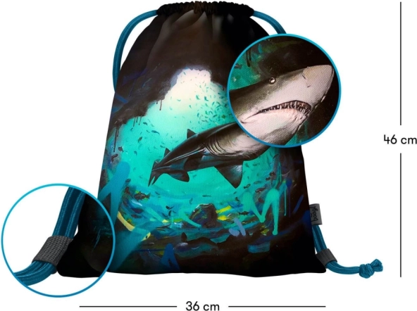 Stilna vrečka z motivom morskega psa od LUKERO združuje funkcionalnost in sodoben dizajn. Primerna je za v šolo, na krožke in šport, kjer varno shrani obutev ali manjšo opremo. Odporen, enostaven za vzdrževanje material zagotavlja dolgo življenjsko dobo in čistost tudi pri vsakodnevni uporabi.