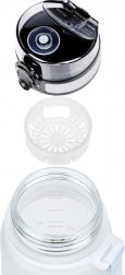 Lahka in trpežna steklenica iz certificiranega tritana zagotavlja udobno hidracijo ves dan. Zahvaljujoč pametnemu pokrovu z zaporo ne uide niti kaplja, flip-top ustnik pa omogoča hitro pitje s samo eno roko. Vgrajeno cedilo je odlično za aromatizirano vodo s sadjem in za čaj – material je primeren tudi za vroče napitke.