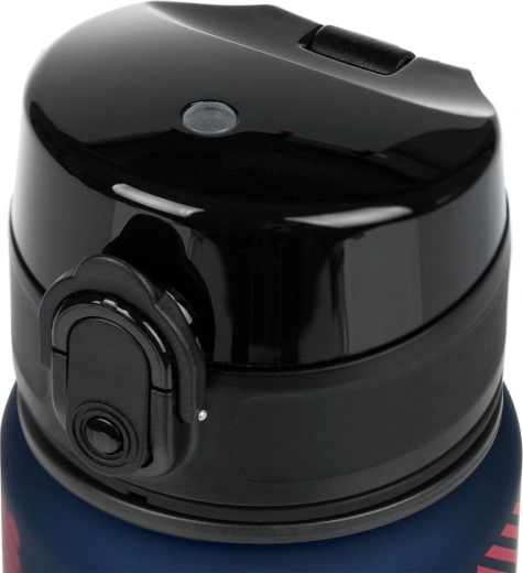 Pokrov z gumbom in varovalom se preprosto upravlja z eno roko in zanesljivo prepreči nenamerno iztekanje tekočine v nahrbtniku.