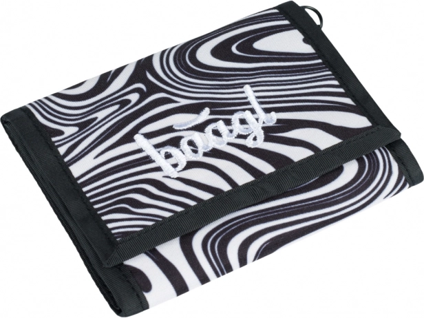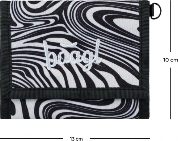Ta denarnica BAAGL ponuja edinstveno kombinacijo sloga in funkcionalnosti. Zaradi čvrstega in vzdržljivega materiala je idealna za v šolo in za vsakodnevno uporabo. Okrašena je s črno-belim abstraktnim vzorcem ter nežnim vezenim napisom na sprednji strani.