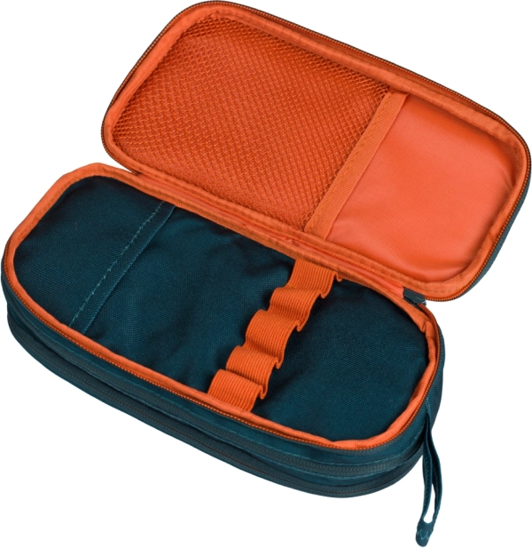 Tri ločeni predelki z zadrgo omogočajo pregleden razpored pisal in drugih predmetov, kar poenostavi iskanje.