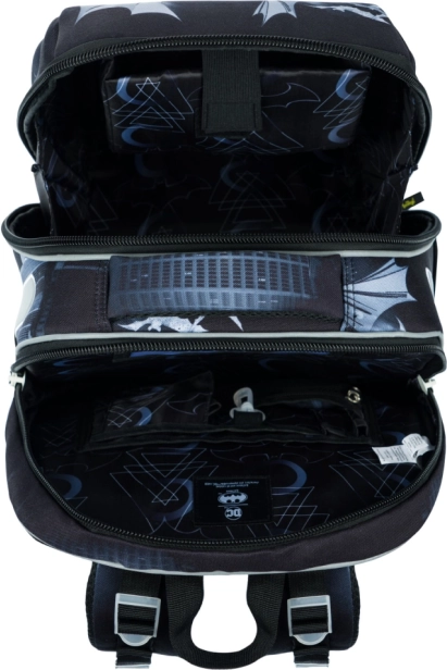 Lahka in stabilna šolska torba za prvošolce in mlajše učence z motivom BATMAN Dark City. Ponuja trdno ojačano ohišje za maksimalno zaščito zvezkov, dvokomorno zasnovo za pregledno nošenje, zračno hrbtišče s sistemom Air Ergo Adjustable ter odsevne elemente za varnost. Nizka masa le 1000 g, prostornina 23 l in praktičen organizator za vse, kar je potrebno za šolo.