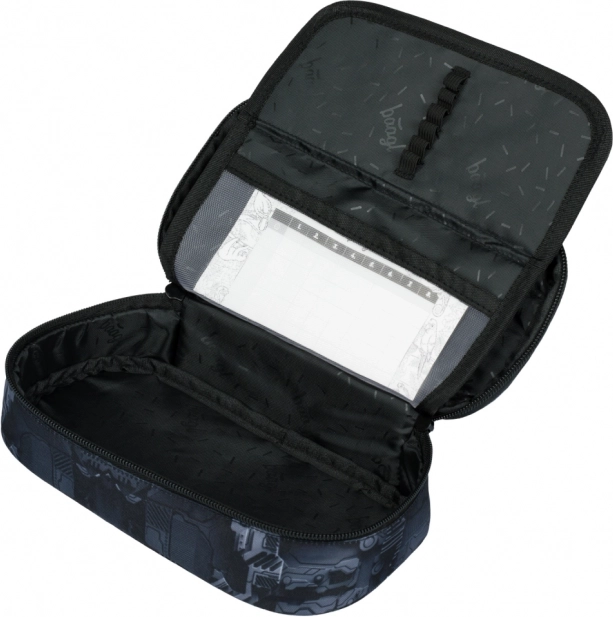 Praktičen šolski etui Baagl Technic ponuja čvrsto izvedbo, preklopno notranjo pregrado za pregledno shranjevanje pripomočkov, žep na zadrgo in žep za urnik. Dobavljiv je brez vsebine, zato ga lahko napolnite točno po svojih potrebah.