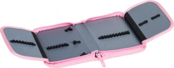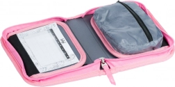 V notranjosti so gumijaste zanke, žepki in predal z zadrgo za urejeno shranjevanje pisal in pripomočkov.