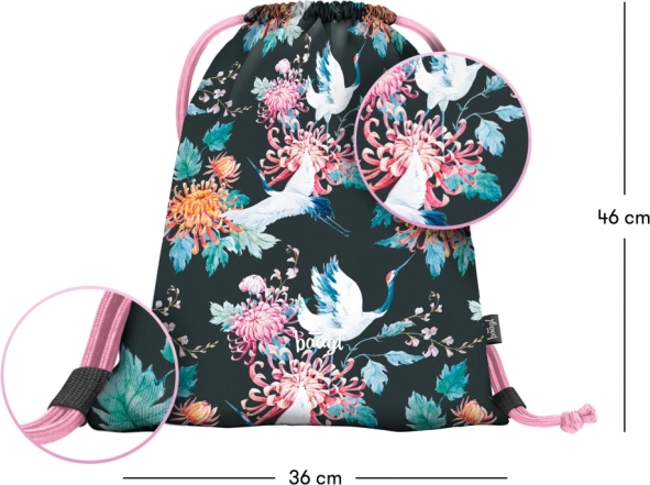 Odkrijte popolno kombinacijo sloga in praktičnosti z našim nahrbtnikom Birdi. Ta nahrbtnik je idealen za prenašanje osebnih stvari ali lahkega blaga v elegantnem oblikovanju z motivom ptic in rož na črni podlagi.