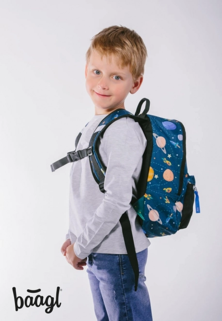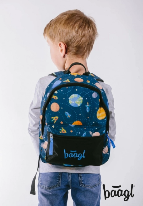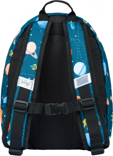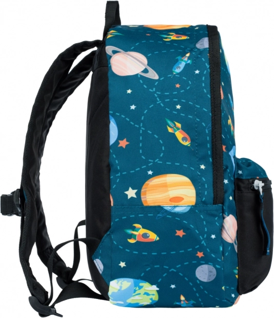 Očarljiv motiv planet in raket bodo otroci vzljubili. Glavni predal sprejme malico in najljubšo igračo, sprednji žep z zadrgo je idealen za drobnarije, robčke ali ključe.