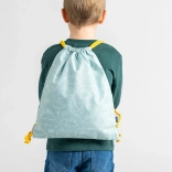 Stilna vrečka z motivom DINOZAVROV bo razveselila otroke v vrtcu in na interesnih dejavnostih. Zahvaljujoč trpežnemu in enostavno vzdržljivemu materialu je primerna za vsakodnevno uporabo ter zaščiti copate, obutev ali druge drobnarije.