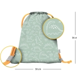Praktična predšolska vrečka z motivom DINOZAVROV znamke Baagl je idealna za obutev in drobnarije. Izdelana je iz trpežnega, pralnega materiala in ima zatezanje s trdnimi vrvicami, ki omogočajo udobno nošenje na hrbtu.