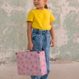 Zložljiv kovček BAAGL Logo v rožnati barvi združuje igriv dizajn in praktično funkcionalnost. Trden laminiran papir in okovani vogali zagotavljajo dolgo življenjsko dobo, kovinski ročaj in zanesljiva zaponka pa olajšata vsakodnevno uporabo v šoli in doma.