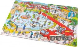Ta velika slikanica popelje male bralce v akcijski svet gasilcev. Otroci bodo videli, kako se pripravlja izvoz, kako deluje dolg lestev, brizgalke in druga oprema ter kako poteka reševanje ljudi iz gorečih hiš. Ilustracije so bogate s podrobnostmi in spodbujajo pripovedovanje zgodb.