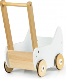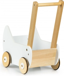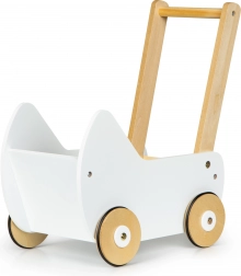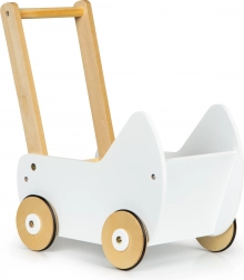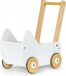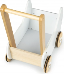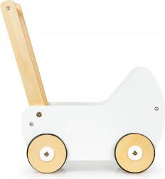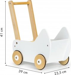 Leseni voziček ECOTOYS ponuja odlično zabavo za vsako deklico, ki se rada igra z lutkami in plišastimi igračami. Voziček omogoča igro mame in razvija otroško domišljijo. Nedrseči gumijasti trakovi na kolesih ščitijo tla pred praskami.